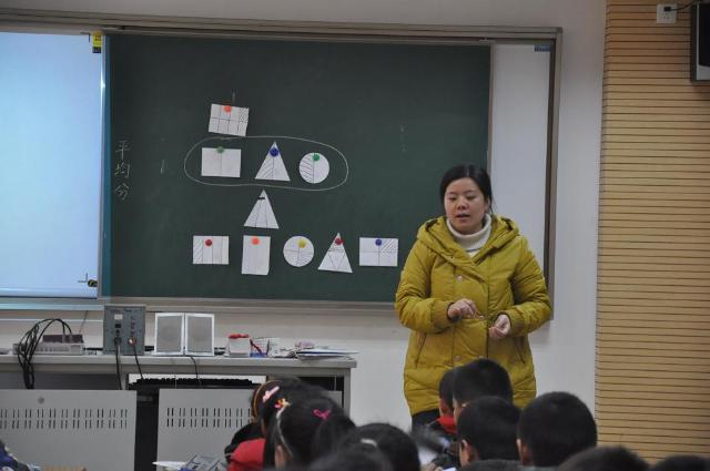 本次活动由实验小学的刘妍慧老师和龙虎小学的荆亚琴老师分别执教一节课,让人耳目一新的是她们选择的内容是三上和三下的《认识分数》,对于这样一节“结构关联”紧密的教学内容,她们都采用了类似的教学结构。在教学活动中,刘老师极具亲和力,语言精练、对学生的方法指导细致;荆老师教学严谨、环节与环节紧紧相扣。在两节课中学生都经历了“大量素材的比较——聚焦抽取本质——抽象概括归纳”的学习过程,他们通过动手画一画、分一分、说一说逐渐感悟到了分数的本质,丰富了分数的认识。在精彩的课堂教学之后,名师工作室的各位骨干老师对两节课进行了评价,在肯定两位老师优点的基础上还有效地进行了重建。虽然大家你一言、我一语地进行着评价,但这并没有让评课散点化。恰恰是在争先恐后的发言中让其余听课老师从整体上看懂了两节课,读出了“教结构、用结构”、“大结构中套小结构”。