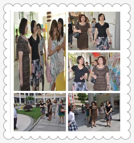 接着,我校校长团队带领来宾参观并介绍了我校的各具特色的专用教室和独具学校文化韵味的“七彩琴韵长廊”,来宾们对长廊间悬挂着出自学生之手的“诗题卡”深感兴趣,称赞这是生生互动的巧妙形式;对各学科各年级的“六一”文化展板更是赞不绝口。