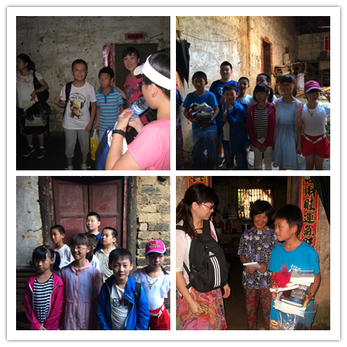 接着,大家在黄守浩老师的带领下,来到天堂寨中心小学。黄老师说,他们学校除了老师和学生之外,其他物资都是爱心人士捐的。在送上了我校捐助的爱心图书馆之后,大家参观了学校。孩子们简陋至极的宿舍、教室里破旧的桌椅,上下课仍旧使用的铃铛,都给在场的每一个人以强烈的震撼。孩子们都说:“跟他们相比,我们真的是生活在天堂啊!”