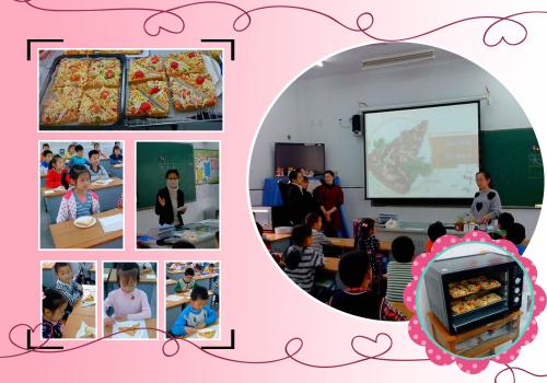 10月30日下午班队课,一(8)班的小朋友们盼来了精彩的“我当小厨师,披萨我来学”的课堂活动。为了让每个小朋友们都动手试一试,体验一下自己动手的乐趣,家长们早已准备好食材:红色的椒热情似火、绿色的椒翠色欲流、白色的洋葱晶莹如冰、黄色的玉米粒金黄高贵,还有诱人的火腿丁和奶酪……
