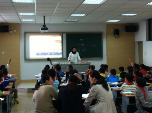 2014年11月4日,虽然外面秋风瑟瑟,但却阻挡不了我们龙虎塘实验小学全体数学老师的研究热情。星期二下午,我们数学组的老师齐聚一堂,在多媒体教室聆听了一年级朱佳韵老师执教的《用括线和“?”表示的实际问题》和二年级倪莹芝老师执教的《认识线段》两节课。