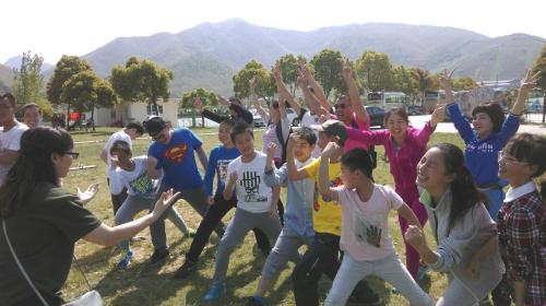 热身活动丰富多彩:“桃花开”的游戏,饱含智慧、谦让与成全他人的大度;“大树与小松鼠”的游戏又让大家灵动而又充满活力;每一轮被淘汰出局的伙伴们用各种姿态与大家打招呼让大家笑得前仰后合……