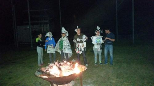晚上的篝火晚会是大家玩得最哈皮的了,集体兔子舞、才艺表演、报纸时装秀、烧烤……火光映着每个人的笑脸,也映在每个人的心里。