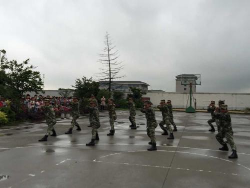 大家排着整齐的队伍来到小操场,等着观看武警叔叔们的表演。“一、二、三、四……”只见武警官兵们排着整齐的队列,小跑来到操场,同学们都情不自禁地发出了惊叹声。首先表演的是擒敌拳,武警叔叔的一招一式都整齐划一,望着官兵们威武的身影,同学们无不肃然起敬,一次次情不自禁地鼓起掌声。虽然阵雨又一次袭来,但战士们军事表演的威严阵容深深地撼动着同学们。