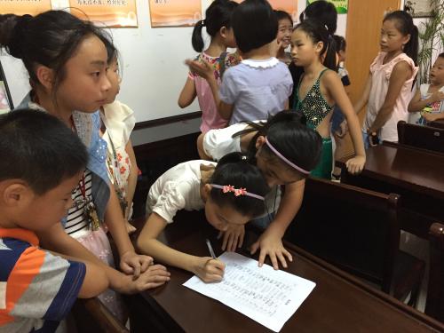 活动结束后,我们请观众填写了一张“活动满意程度调查表”,他们100%对活动表示满意,表示“学中玩,玩中学,让暑假生活不再无聊”“参与了,很快乐”……并希望“能多多开展”。同时,也对我们提出了一些友好建议,如“主持时要面带微笑”“将现场秩序控制得更好”等。