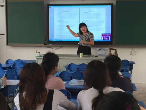 亮点1:本土专家——实在。特邀了上一届一年级的年级组长吴静娟,她用自己的丰富经验,直白易懂的语言讲解了拼音教学一些注意点、小窍门,如拼音与二会字结合的练习设计。又根据大家的提出的困惑,在互动交流中提供了可行的方法来培养一年级学生良好的课堂和作业习惯,如“指导第一组的时候,眼睛的余光要扫描到第四组,及时发现和调整‘每一个’的学习状态。”。还介绍了去年游园式拼音过关的流程以及过程中的一些亮点与不足。