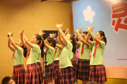 上午8点,家长代表、优秀学生代表、优秀辅导员以及关工委的老教师们齐聚报告厅,其他学生端坐教室,一起观看以“灵动龙娃,乐享创新韵无穷”为主题的“六一”庆祝文艺汇演。通过前期“龙小好声音”海选活动和班歌比赛,许多“未来之星”脱颖而出。歌曲串烧、大合唱吸人眼球;架子鼓、英语故事各领风骚;炫彩魔方、科技发明也搬上舞台,更有从学校里脱颖而出的班歌展示……这些节目或许没有往年老师们精心排练的节目那么精致,可是孩子们却比往年更加积极。自主排练舞蹈、动手制作道具、精心准备服装,即使是歌词也一遍遍背的烂熟于心,这样选自“民间”的活动深得孩子们的喜爱。