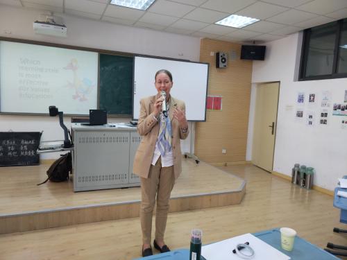 最后,主办方江苏省天合公益基金会吴春燕女士和龙虎塘实验小学钱丽美校长做了简短的讲话,对Trish Summerfield老师不图名利,热情地坚持做价值观引导以及两位翻译的助手和负责联络的Viannien女士和从北京赶来的嘉宾李嘉林女士表示感谢,并希望后期再听到Trish Summerfield来这里给更多人上这样的有意义的课。