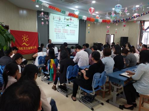 9月23日上午9点,虽然天空阴雨绵绵,却阻挡不了龙虎塘实验小学家长们的脚步,早早地来到了盘龙校区三楼的报告厅,聆听由“同心阳光公益联合会”邀请的常州工学院教育与人文学院的潘金林教授,关于如何培养孩子爱上阅读的讲座,由陈亚兰主任主持。