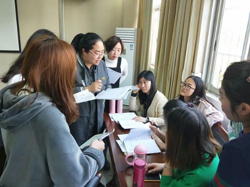 课后,全体教师集中在会议室,对两位老师的课进行了针对性地研讨。对于蔡老师所执教的《小公鸡和小鸭子》,大家给出的建议是课堂板块设计不够分明,碎片式的课堂语言,使得知识结构不成体系,另外对于学生的课堂发言,教师还没能做到及时的回应和有效地提升。