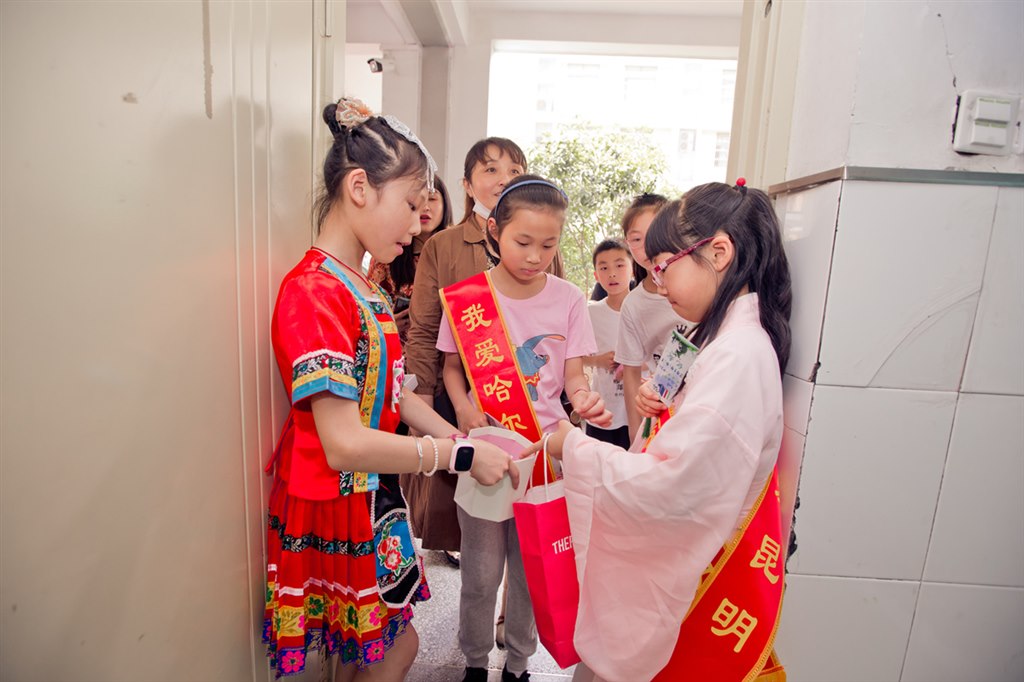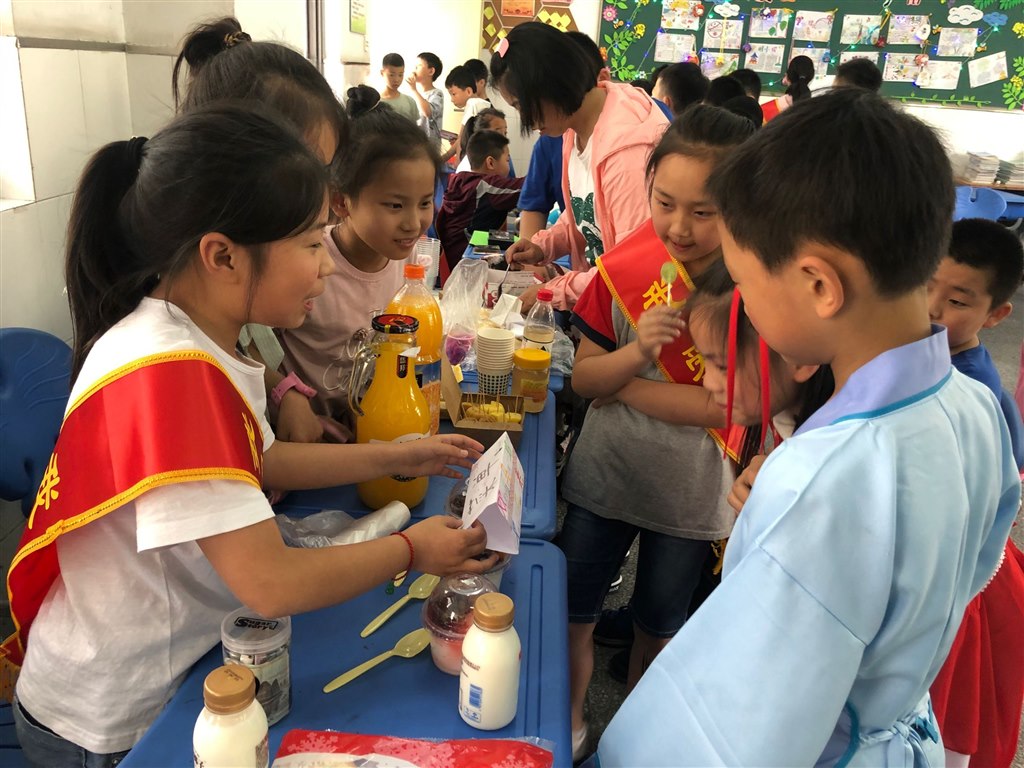 游园开始啦,每个班级的小导游、收营员、推销员等工作人员各就各位,俨然场馆小主人的姿态,家长志愿者们也在一旁或观察或指导,场面异常火爆!美食街区、经典景点、民俗体验等区域让每个班级都成了浓缩的地方特色馆,各班场馆布置不仅各具特色,而且创意十足,既融合了地方文化,也彰显时代气息。从内蒙古、新疆、西藏自治区到香港、澳门特别行政区,从西北的兰州到江南的苏州、无锡、扬州,从六朝古都到现代“魔都”上海,……整个学校的场馆跨越东西南北,跨越文化民俗,真是精彩纷呈。瞧,那一张张出自龙娃之手的精美宣传海报,可是酿足了班级气韵,吸引了不少前来参观的小游客呢!最受欢迎的莫过于美食了,走过路过,绝不错过,常州大麻糕、西安泡馍、成都串串、重庆小面、厦门双皮奶、台北奶茶......都成了龙娃们竞相品尝的美味佳肴。民俗、文化、景点类的推荐展示也毫不逊色呢,有的直接出售别致的手工艺品;有的看唱滩簧送豆腐汤,有的为顾客精心准备了地方特色服装和化妆服务用于“Cosplay”;有的把美景搬到教室,提供3D打印;有的设置抖空竹、射箭、知识大闯关等体验活动;还有的开设幸运抽奖环节......除了班级场馆,学校还引进了魔术、爆米花、乱针绣等常州非遗文化项目进校园,并设立了场馆,那一项项绝活儿令小龙娃们大开眼界,惊叹连连!一个个场馆逛过去,大家赏美景、品文化、吃美食,在吃喝玩乐中分享了创意,分享了智慧。此刻,孩子们的眼里,一场盛会,百花齐放,祖国妈妈就在你我的身边。