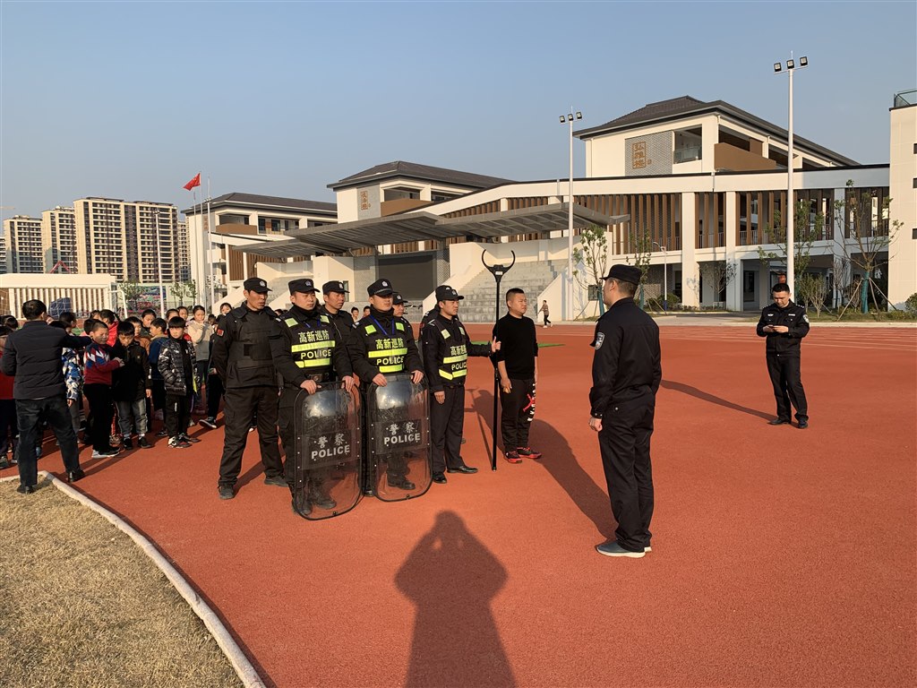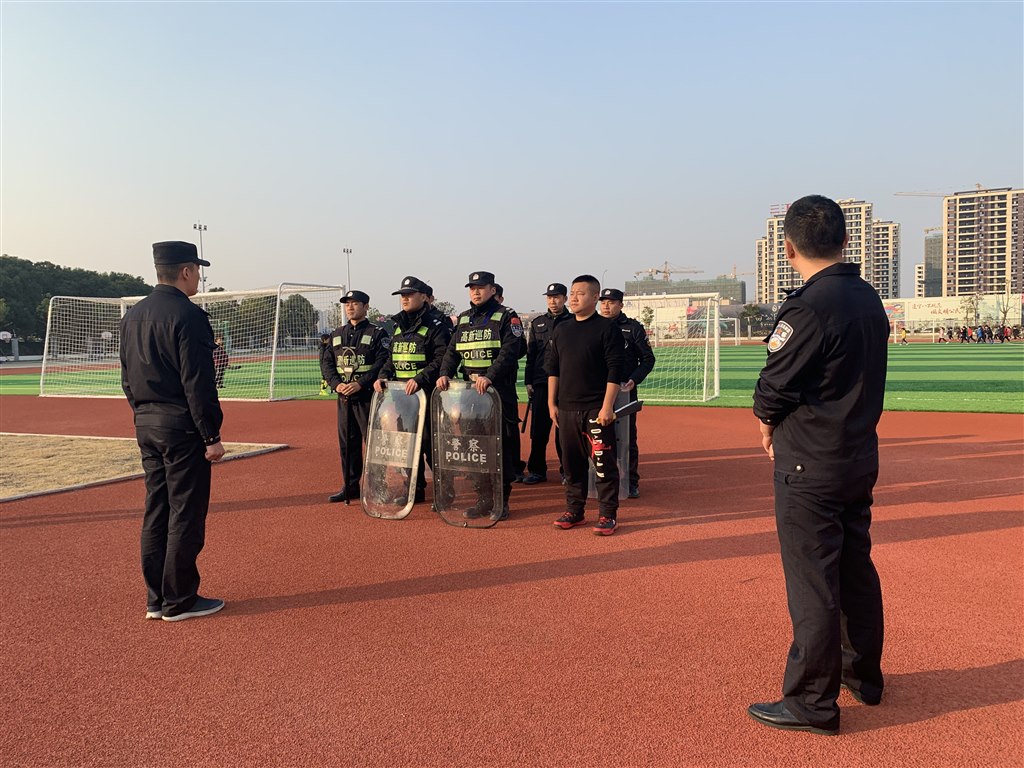 龙虎塘派出所民警杨懿行等警官就队列训练、警用盾牌、警棍、钢叉等的使用进行了培训。培训中,全体参训人员态度端正,训练认真,动作规范、整齐,练出了精气神。最后,杨警官结合近期发生的校园安全事件强调了校园安全保卫工作的重要性。