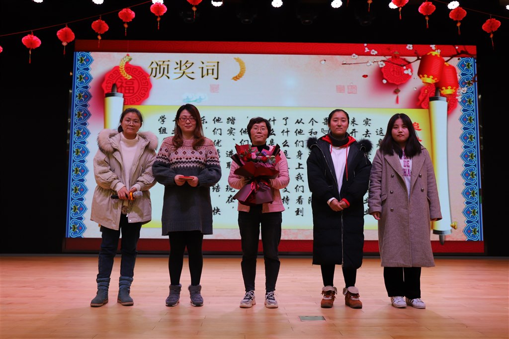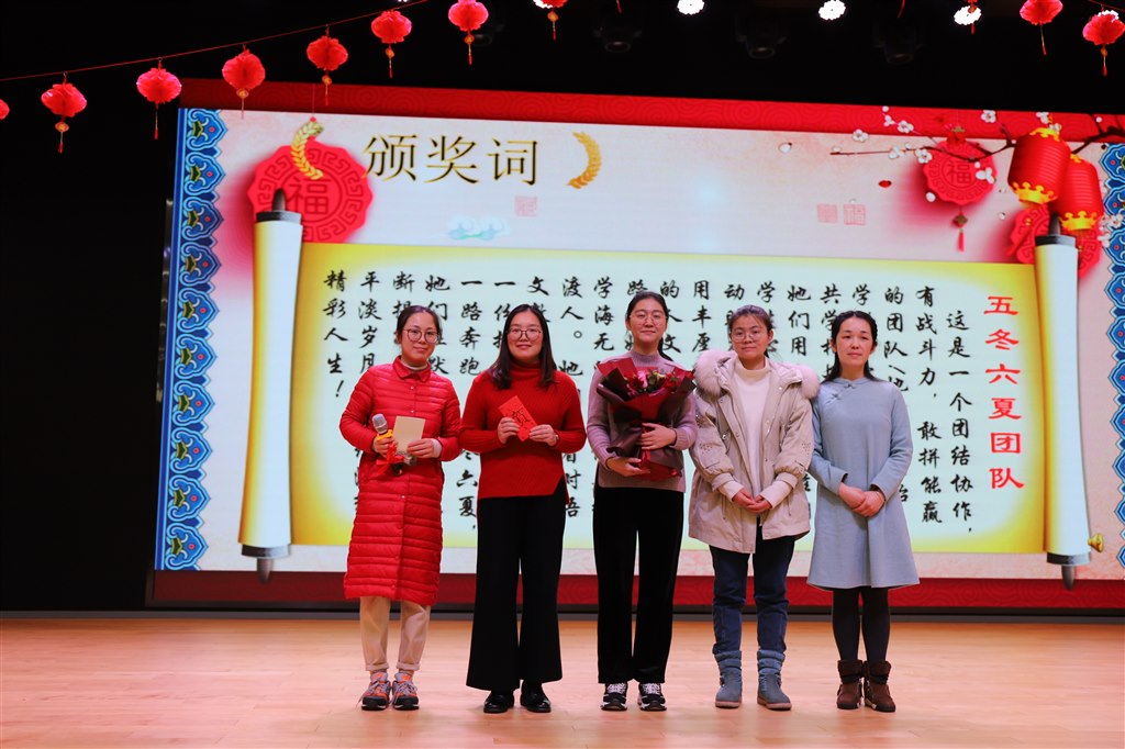 最后,颁奖典礼随着二位主持人刘赟磊、巢杨希老师幽默风趣的开场,2019年度“感动校园”颁奖盛典拉开了序幕。食堂赵师傅“国标舞”团的火爆劲舞,燃起了现场的热烈气氛,让与会老师感受到了蓬勃生命力。在火热的开场舞后,“新”字篇章里有美容师“妙笔丹青”美术组、为大家提供美观、高效、稳定、高性价比的超能量天团“一路向前”的信息组,“在默默耕耘中不断提升生活品质,在平淡岁月里继续演绎精彩人生的“五冬六夏”六语组。“暖”字篇章里,有“在平凡的工作中求实、求效、求新”的食堂团队super饭米粒、“迎着太阳,散发着灿烂的光芒”的向阳花音乐组,“带来八大行星美好祝福”的追梦科学组、“用最美的姿态舞动青春旋律”的舞(五)动青春五年级正副班主任组,用他们“暖暖地真贴心”的点滴日常创造二小的精彩。金鼠辞旧岁,瑞鼠迎新来,“鼠”字篇章里迎来了三个“土豪团队”:“尊重事实科学精神,颇具生命力、战斗力”的“三十而立”数学组、“拥有自己的锦绣,也不负相遇难得”的Ms eleven英语组、“佳人如珍、才女如云、龙二小最庞大教师团体”最芳华语文组。十个团队用不同风貌展现多样风采,他们用平凡抒写情怀,用点滴绘就创生。