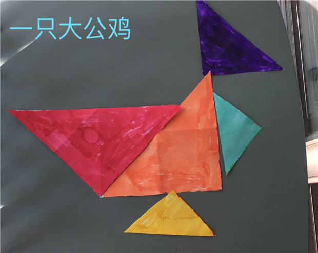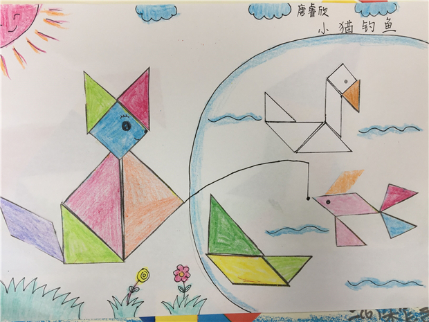 其次,我们提供了几张优秀的用七巧板拼制的图形,供学生参考,让孩子们有所依,有利于孩子展开从模仿到自主创新的学习。