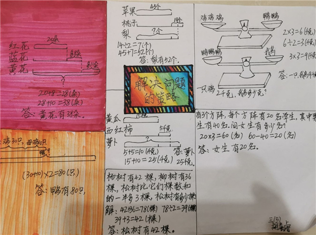 能较熟练的根据“从条件想起的”的策略,用“乘加”、“乘减”等模型解决实际问题。孩子们通过QQ群分享自己解决问题的思维导图,大家共同学习、共同进步 。