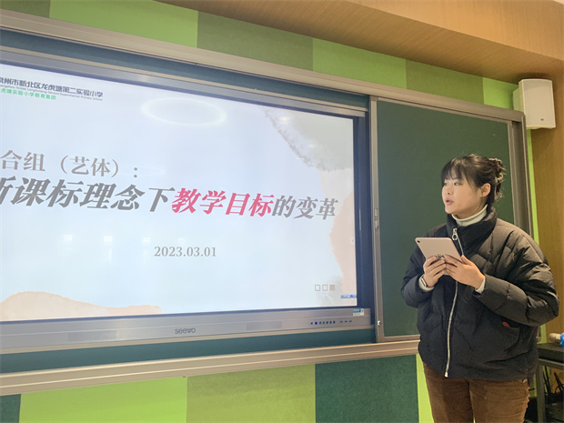阳光正好,研究正浓。3月1日下午,综合组音、体、美三个学科围绕“新课标理念下教学目标的变革”这一主题,展开学习新课标、践行新理念的教研活动。本次活动由巢杨希老师主持。