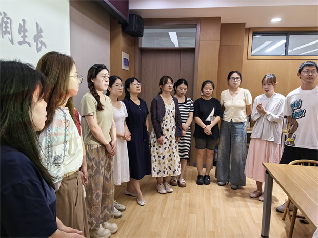 培训以一场别开生面的“默契同心圆”暖场游戏拉开序幕。全体一年级教师围成圈,在“我教语文”“从事教育超5年”“假期解锁新技能”“首次任教一年级”等趣味条件中,通过“向前一步”的互动,快速拉近距离。当最后一句“我相信我们17人会组成最有爱、最给力的团队”响起时,老师们大步向前,在欢笑与掌声中凝聚起共同的教育信念。