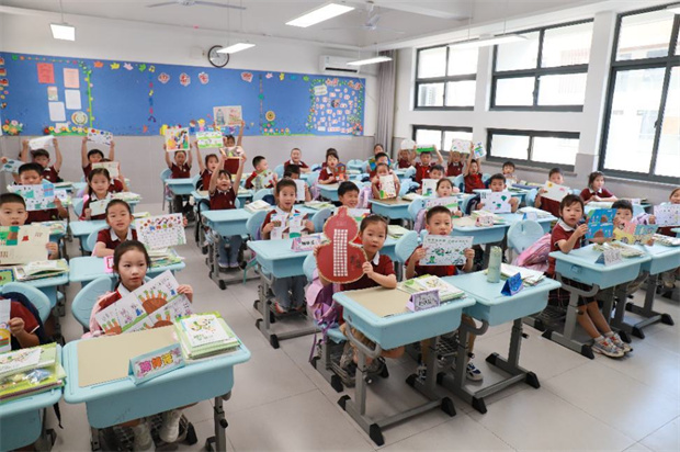一年级的小朋友们,在高年级小向导的牵引下,手捧校园风景拼图,怀着好奇与激动踏上红毯,高高兴兴走向教室。稚嫩的脸上满是期待,当“恭喜你们成为神气的小学生”这句祝福响起时,孩子们眼里瞬间亮起星光,小胸脯也骄傲地挺了起来。