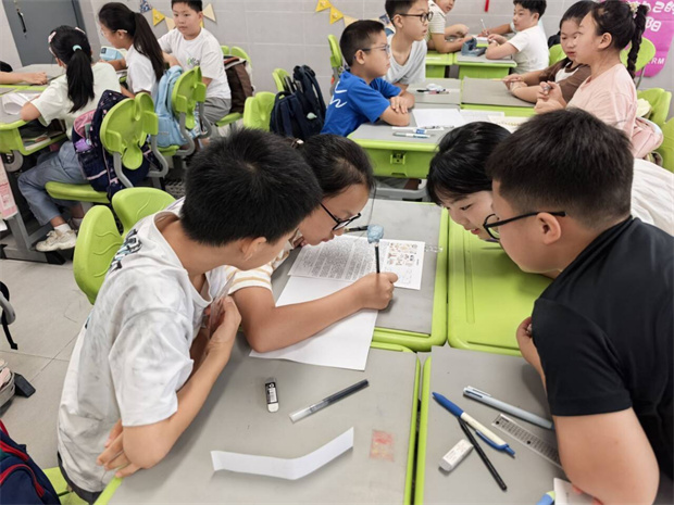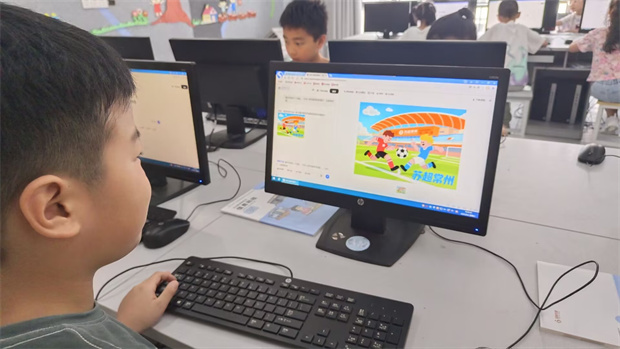 如何看懂苏超?那就要了解比赛规则、知晓足球专业术语、懂得积分规则……在四年级各学科老师的带领下,孩子们观看苏超进球视频,化身“苏超解说员”,为进球片段撰写解说词;聚焦苏超足球联赛中的数学知识和几何元素,并亲手折一折足球上的五边形图案;学习足球比赛中的动词用法,了解苏超13个城市代表物的英文表达;赏析足球赛歌曲,感悟音乐中传递的竞技精神;分析进球战术,深化对运动规律的理解;设计足球吉祥物,释放创意灵感;探究马格努斯效应,揭秘足球弧线的科学奥秘;还带领孩子们用人工智能豆包设计“苏超”加油海报,实现了技术与艺术的融合。