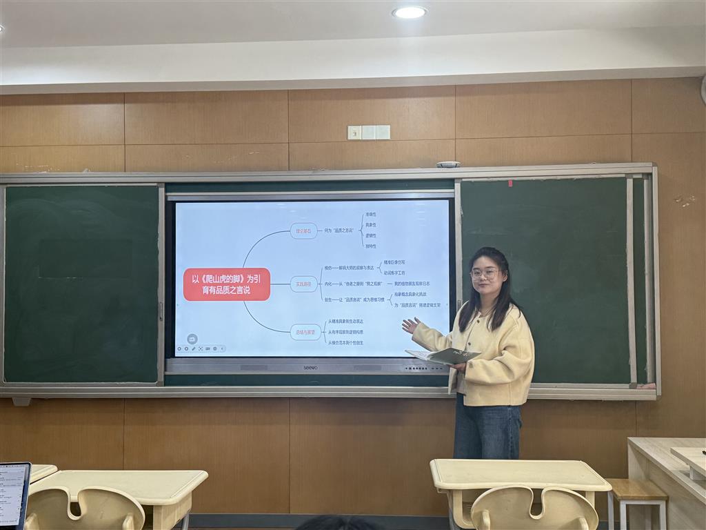 朱柯侠老师带来了以《以<爬山虎的脚>为引,育有品质之言说》为题的讲座。朱老师分享道,“有品质之言说” 需同时具备精准性、具象性、逻辑性与独特性四大核心特质,并分享了可落地的 “三阶实践路径”:首先引导学生模仿文本,通过仿写植物局部、锤炼动词,解码文学大师的表达技巧;接着指导学生撰写植物观察日志,助力其内化科学观察方法;最后通过 “抽象概念具象化”“搭建写作逻辑支架” 两大策略,推动 “品质言说” 转化为学生的语言习惯。朱老师指出,语文教学应以经典文本为依托,让学生在实践中实现语言能力的自然生长,为在场教师提供了兼具理论性与实用性的教学方案。